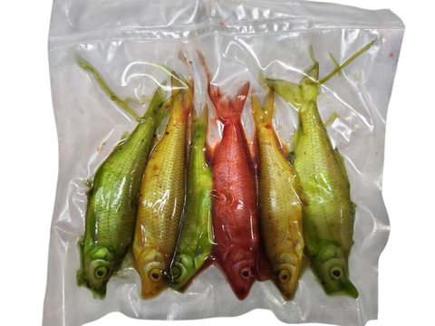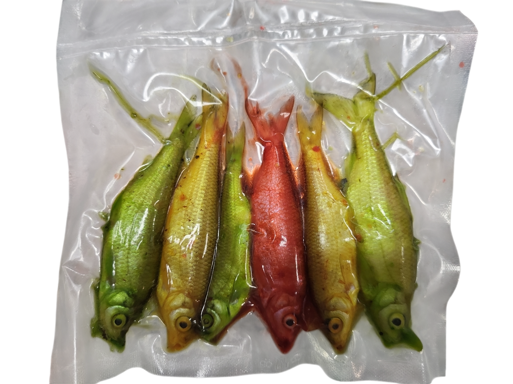 Frozen bait is an exceptionally bait, it is blast frozen and the fish are keeping the original color and shape. Vacuum packed and frozen will keep the bait "fresher" for a long period of time. We keep our frozen bait in the freezer at -25 C and it will be ready for you to use it.