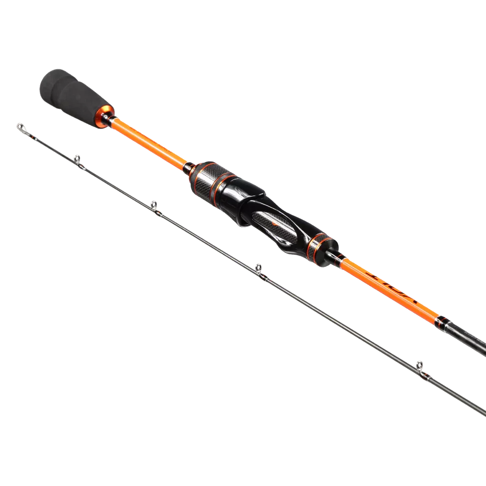 Tubular carbon tip – classic feel for long, accurate casts with tiny lures (no “noodle” wobble here).