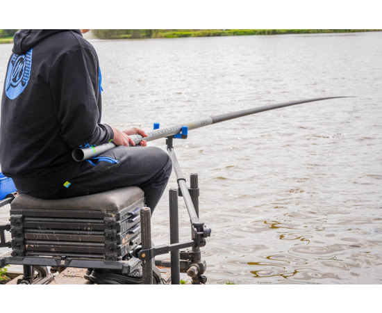 The brainchild of Des Shipp, this product has been designed to make fishing long lengths of pole effortless. Featuring a strong rear knuckle & sliding attachment, the pole can be angled in multiple positions effortlessly. The rotating EVA front rest takes the weight of the pole allowing effortless fishing.