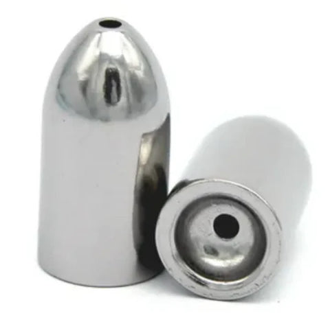 In addition, it fits much better with small walleye and perch baits, for example, from the size ratio. The lower end of our weights has a concave cavity, which provides the perfect sound in conjunction with glass or Hematite beads.