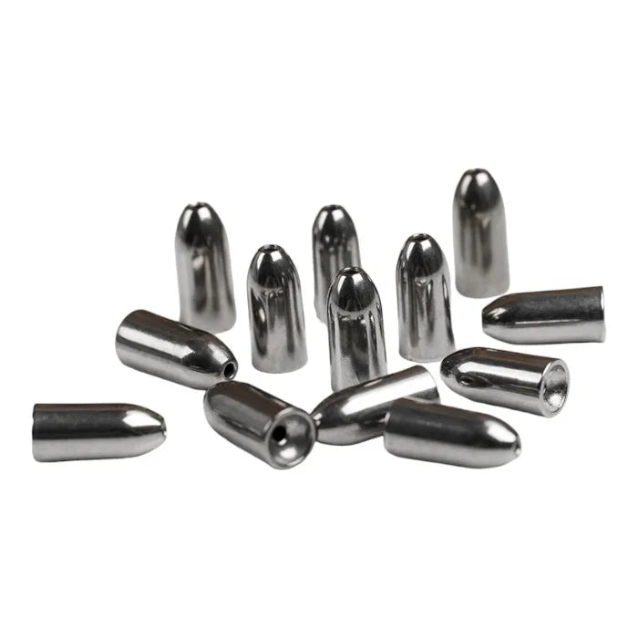 Tungsten weights, Natural, Plain, are excellent for finesse fishing, such as Texas-, Carolina Rigs, etc.. Moreover, the use of lead is no longer tolerated in all European waters. Tungsten weights are lead free and not harmful to the environment.